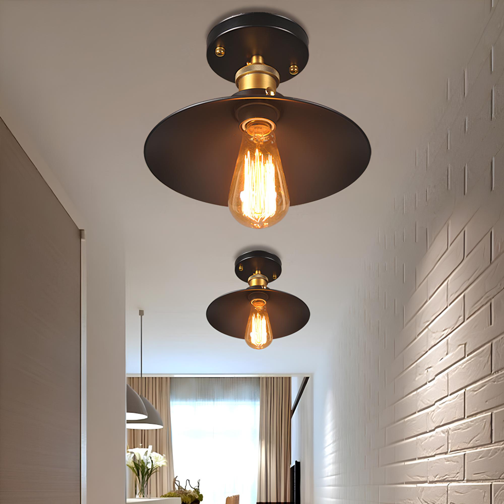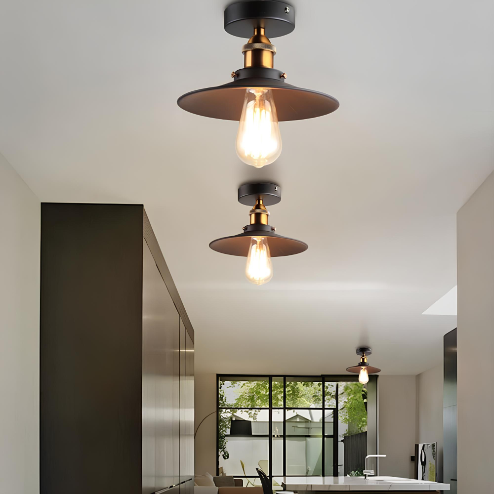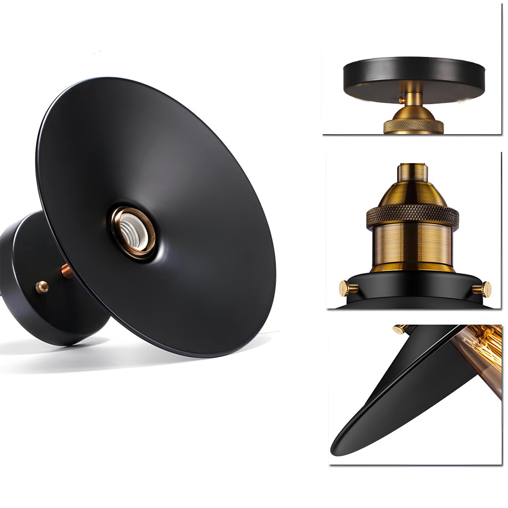 L’abat-jour plat de notre plafonnier champignon rétro-industriel offre un éclairage uniforme et sans ombre, permettant ainsi de profiter pleinement de la lumière dans toute sa splendeur. Vous pourrez illuminer un salon accueillant, une cuisine animée ou un bureau créatif avec notre plafonnier, conçu pour éclairer votre espace de manière efficace et harmonieuse.